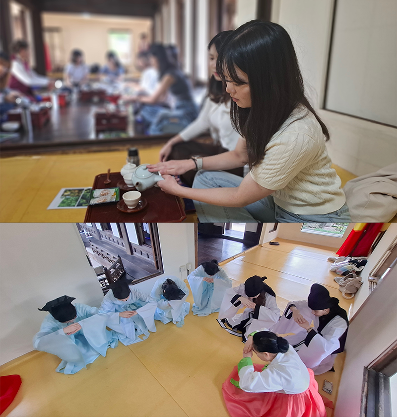 文化授業は一学期(3か月)に一度実施されました。最初の学期には歴史的な宮殿を訪れ、韓服を着用し、伝統的な遊びやお茶の体験をしました。次の学期には歴史博物館を見学し、展示を通して歴史を学びました。また、ペイントに関する講演も鑑賞し、さまざまな文化に触れる貴重な機会となりました。