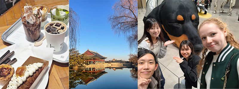 授業終わりや週末には、友達とカフェに行ったり、おいしいと話題の飲食店を探して食べに行ったりしました。韓国にはおしゃれで個性的なカフェが多く、店ごとに雰囲気が違っていて、巡るだけでもとても楽しかったです。辛い料理や日本ではあまり見かけないメニューにも挑戦し、食を通して文化の違いも感じることができました。また、時々観光にも出かけ、少し遠出をして日帰りで大田や江陵にも行きました。