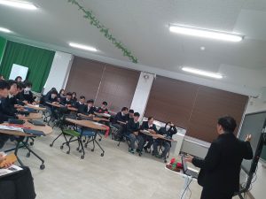 2025年11月20日、京都府立向陽高校3年生34名を対象に実施しました。この講義では,最初に、福島第一原発事故前後における日本のエネルギー政策の変容について述べ、火力発電(特に、LNG:液化天然ガス)を中心とする現在の電源構成比率について解説しました。続いて、この火力発電に依存する現状と、ここ数年の地球温暖化の影響について述べ、二酸化炭素排出削減が急務であること、2050年のカーボンニュートラルに向けて、火力発電から原発再稼働と再生可能エネルギーの比率を今後、向上させていく傾向にあることを述べました。