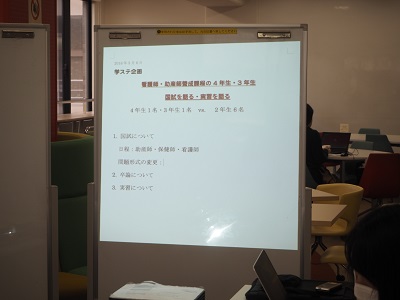 4年生・3年生の先輩ピア・サポーターから「国試」、「実習」について話を聞こうというものです。