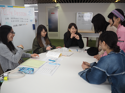 ライフデザイン学科のピア・サポーターは、学習ステーションの外に出て、