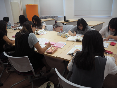 これは前期のレポートの指導をしている時の様子です。