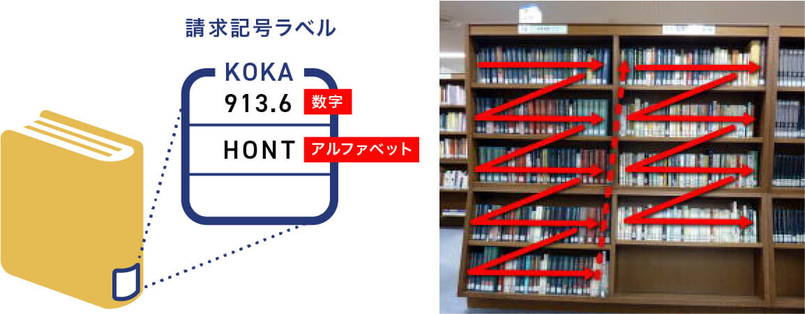 図書館の資料は閲覧室のほか、書庫にもあります。 申し込みには①または②の方法があります。